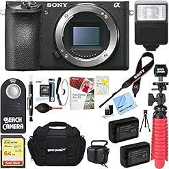 Sony a6500 4K Mirrorless Digital Camera Body with 64GB SD Card and Dual Battery Bundle