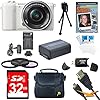 Sony a5100 ILCE5100L/W 16-50mm Interchangeable Lens Camera with 3-Inch Flip-Up LCD (White) Bundle with 32GB Class 10 SD Card, Spare Battery, AC/DC Charger + More