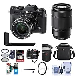 Fujifilm X-T20 24.3MP Mirrorless Camera with XC 16-50mm f/3.5-5.6 OIS II Lens, Black -Bundle XC 50-230mm F4.5-6.7 OIS II Lens Black, Metal Hand Grip and Free Accessory Bundle
