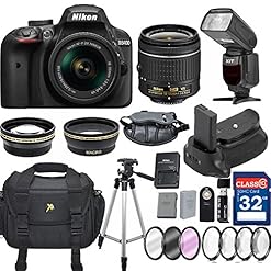 Nikon D3400 DX-format Digital SLR w/ AF-P DX NIKKOR 18-55mm f/3.5-5.6G VR + 32GB Memory Professional Accessory Bundle – International Version