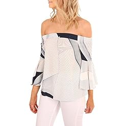 Women Sexy Blouse Off Shoulder Geometric Splicing Print 2017 Long Sleeve Casual Tops