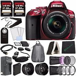Nikon D5300 DSLR Camera with 18-55mm AF-P DX Lens (Red) + Battery + Charger + Sony 64GB Card + HDMI + Backpack Case + Remote Bundle