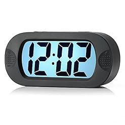 Plumeet Easy Setting Silicone Protective Cover Digital Silent LCD Large Screen Desk Bedside Alarm Clock with Snooze Light Function Batteries Powered