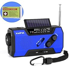 IntiPal 2000mAh Emergency Solar Hand Crank Radio with AM/FM/NOAA Weather Channel, 1W LED Bright Zoom Flashlight, 4 LED Reading Lamp, Support 4 Ways to Charge – with Emergency Blanket