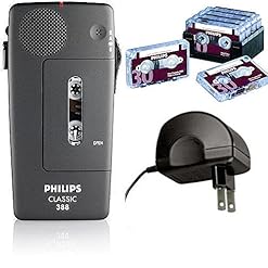 YBS Philips LFH388 Pocket Memo Classic 388 Portable Mini Cassette Recorder with Power Adapter and 10 Mini-Cassettes