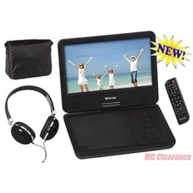 9″ inch Portable DVD/CD Player with Swivel Screen and Fold, Rechargeable Battery, Remote Control, Travel Bag with Matching Color Headphones and AC/DC Adapter Encore DVD901MO – Black