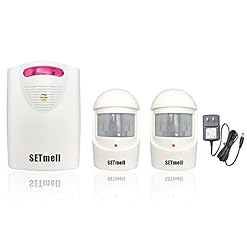 SETmell Wireless Home Security Driveway Alarm and Doorbell, 1 AC Adapter & 1 Long Range Reciever & 2 PIR Motion Sensor Detector Weatherproof Patrol Infrared Alert System Kit