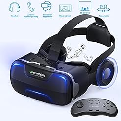Eleovo 3D VR Headset with Remote Controller Large Viewing Experience Virtual Reality Glasses with Builted-in Stereo Headphone for VR Games 3D Movies Fit for 4.7-6.0 Inches iPhone Android Smartphones