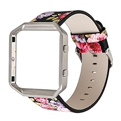 YOSWAN Replacement Band for Fitbit Blaze, Watchband Floral Soft Leather Strap Replacement Watch Band Wristband Bracelet Strap and Frame for Fitbit Blaze