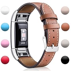 Hotodeal Band Compatible Fitbit Charge 2 Replacement Bands, Classic Genuine Leather Wristband Metal Connectors, Fitness Strap Women Men Small Large