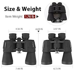 Powerful Binocular —Full 10 x magnification, 50mm object lens diameter, more clear, even low light condition. ( Full-size: 7.48 x 6.69 x 3.97 inch / Net heavy weight : 1.76 lb)
