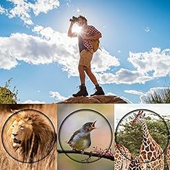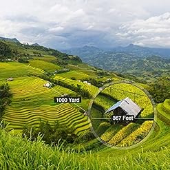 Large Field of View —367 ft/1,000Yds, good for fast moving subject.Perfect for adults bird watching, sightseeing, hunting, natural world watching, sports events, and so forth. ( NOT Suitable for glasses wearer)
