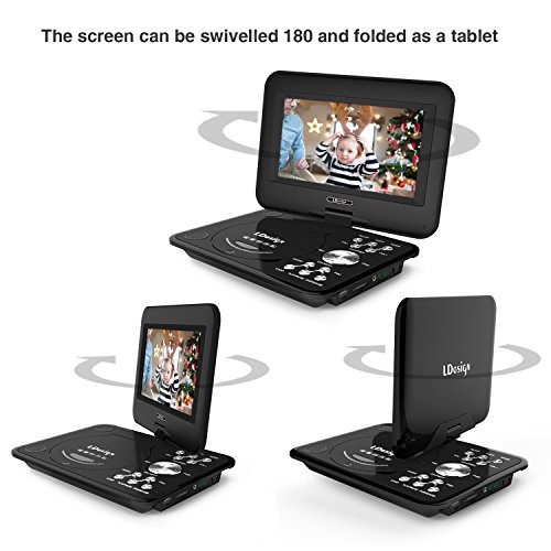 【Enjoyable LDesign Portable DVD Player ,Net-free, Ad-free entertainment option】: Designed with 1024*600(3RGB) high resolution,support CVBS video output terminal, built with 2500 mAh rechargeable lithium battery that ensures an using time more than 4 hours. Perfect to use in plane, car, bus or at home,long road trip