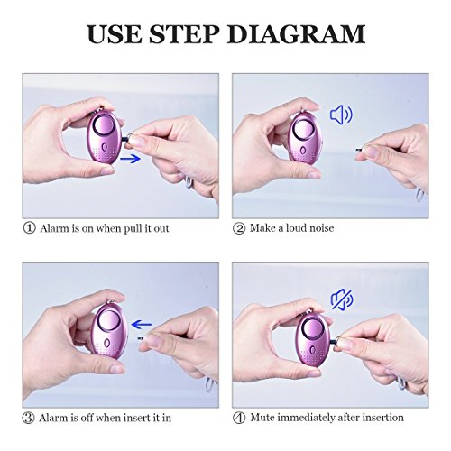 ❤ Easy To Use:To sound the personal alarm ,simply pull out the switch pin from the device ,Push the pin back to stop the sound.
