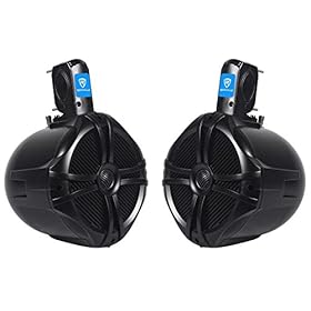 Rockville RWB80B Pair of 8″ Black WakeBoard Tower Speakers Totaling 600 Watts (three hundred Watts per speaker). 8″ Two-Way High Fidelity Speaker System. Adjustable Nylon Mounting Bracket Reinforced With Embedded Steel. 1″ Polymide Dome Neodymium Midrange Tweeter. Built-In Two-Way Crossover Network. Fully Marinized Against Salt & Fresh Water Conditions. Completely Water / Rust Resistant.