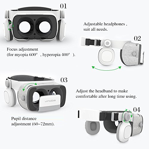 120° IMMERSIVE FOV: Anti-distorted arc correction technology makes 120° big view more real and clear, 42mm aspheric lenses is an ideal match with 0.39mm color difference. Focal length: Myopia adjusts 0-600°, hyperopia adjusts 0-200°.