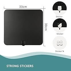 Svelte and Sticky Indoor HDTV Antenna with High Reception Performance — This Indoor Digital HDTV Antenna design with rectangular antenna configurations in favor of a flat. The sticky side has enough adhesive to ensure it will cling to a window or painted wall, while still allowing you to easily reposition the antenna without having to peel off stickers that can damage paint and plaster.