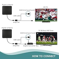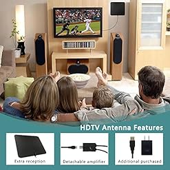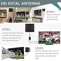 Svelte and Sticky Indoor HDTV Antenna with High Reception Performance — This Indoor Digital HDTV Antenna design with rectangular antenna configurations in favor of a flat. The sticky side has enough adhesive to verify it’ll cling to a window or painted wall, at the same time as still allowing you to easily reposition the antenna without having to peel off stickers that can damage paint and plaster.