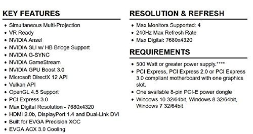 The EVGA GeForce GTX 1070 featuring EVGA ACX 3.0 cooling has arrived. This new graphics card features NVIDIA’s new “Pascal” graphics processor which is the most advanced gaming GPU ever created. This breakthrough GPU delivers industry-leading performance, innovative new gaming technologies, and immersive, nextgen VR. These cards also feature EVGA ACX 3.0 cooling technology. EVGA ACX 3.0 once again brings new and exciting features to the award winning EVGA ACX cooling technology. SHP 2.0 gives increased heatpipes and copper contact area for cooler operation, and optimized fan curve for even quieter gaming. Of course, ACX 3.0 coolers also feature optimized swept fan blades, double ball bearings and an extreme low power motor, delivering more air flow with less power, unlocking additional power for the GPU. Customer service about this product at 1-888-881-3842 or [email protected] for trouble shooting issue .