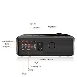 TONS OF INPUT OPTIONS & FEATURES – Ideal for home theater, gaming, backyard movie nights, and TV. – Dual HDMI / USB ports. 2-HDMI (Give a boost to 1.1-1.4) 2-USB 2.0 (Supports Hard Disk), VGA (PC), YPbPr, Composite A/V, Audio Out (L/R), Aspect ratio 4:3 / 16:9. Bright enough for small conference room.