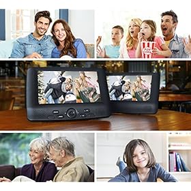 Dual screen plays the same movie – the host player outputs AV signals, the monitor inputs AV signals, share the same movie, rescue your kids from the boring road trips!
