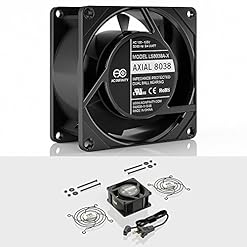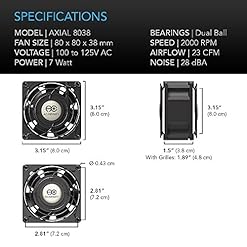 The heavy duty axial fan kit is designed for custom projects and as a replacement fan. The fan runs on 100 to 125V AC and contains everything needed to easily mount the fan and power it through a wall outlet. Includes a 4 foot power cord that can be easily attached to the fan’s metal terminals and allows it to be powered through a wall outlet. The plug cord can also be cut and be converted into lead wires to be connected to a wired AC power source. Also includes two 80 millimeter metal fan guards and a mounting screw set. AC Infinity fans are certified by CE, UL, TUV, and RoHS.