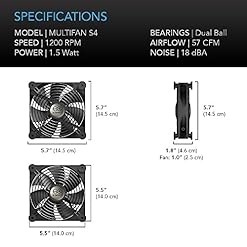Fan Size: 5.5 x 5.5 x 1 in. | Airflow: 57 CFM | Noise: 18 dBA | Bearings: Dual Ball