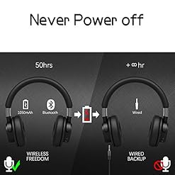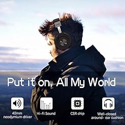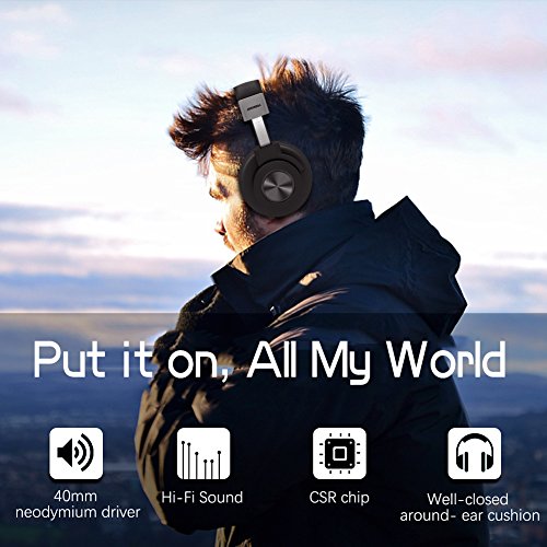 [Excellent Sound] Over ear bluetooth headphones has Hi-Fi Stereo quality. The CSR chip and Dual 40mm strong magnetic units drive dynamic vigorous bass and make Hi-Fi stereo with a a three-dimensional sense of space, such as temporary scene. Those design guarantee high fidelity and Stereo CD sound quality. It meets different needs of music movie enjoyment and playing games perfectly