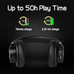 [Dedicated to Comfort] Wireless headsets’ soft parts are made of soft Memory-Protein skin and high elastic sponge. With a 3.5in/90mm diameter, breathable earmuffs fit the skin softly and comfortably. Also,the soft crossbeam surface protect your head from sharp-pointed. Gentle Reminder: please take off the headphone every 2-3 hrs to relax your ears, in order to get better hearing enjoyment and keep the head comfortable