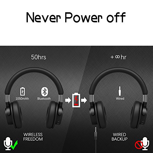 Acekool 50hr Wireless Headphones Over-Ear, HiFi Stereo Bluetooth Headset, Crystal Clear Sound, Quick Charge, Soft Memory Earmuffs, Mic and Wired Mode for PC/ Tablets/ Cellphone/ TV