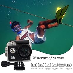 【100% 4K HD Action Camera】: Provides 4K/25FPS, 2.7K/30FPS, 1080P/60FPS, 1080P/30FPS and 720P/120FPS Video Resolution. 12MP Image Resolution & 170 Super Wide Angle Lens Delivers Skip-Free HD Video and Correctly Capture Each and every Epic View And Exciting Moment For You