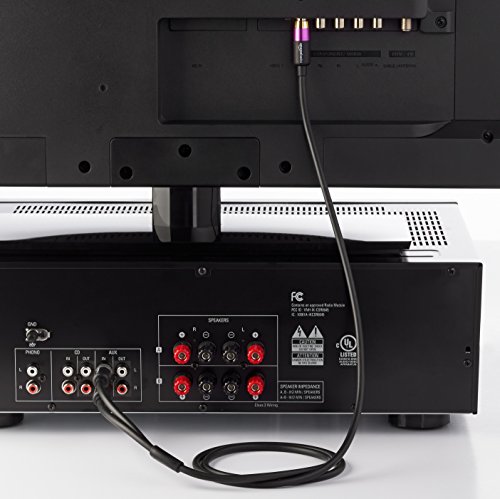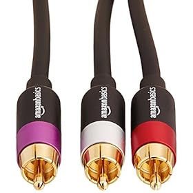 Red/white/purple color-marked connectors for quick, easy left-and-right hookups; backed by an AmazonBasics 1-year limited warranty