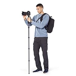 Monopod product of lightweight 8X carbon fiber designed for stabilizing SLR, compact, and action cameras; convenient wearing bag included