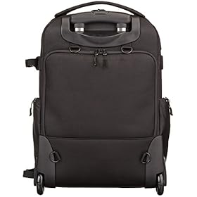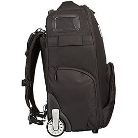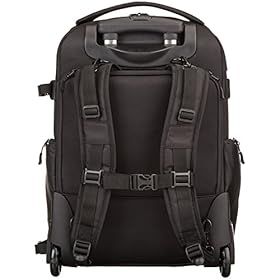 Large camera commute bag with wheels briefly converts from rolling case to backpack; airplane carry-on compatible