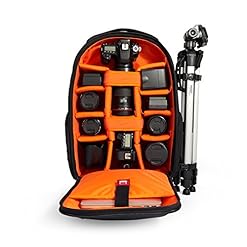 Can hold a full DSLR body with lens attached; 11 additional configurable compartments for lenses, chargers, batteries, filters, and more