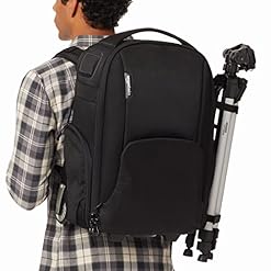 Padded compartment for a tablet or 17-inch laptop; front pockets, side straps for a tripod; 2 side pockets with space for memory cards