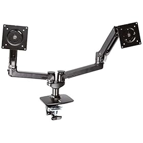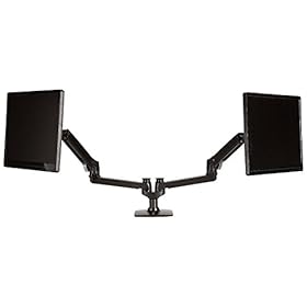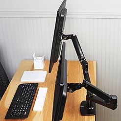 Dual side-by-side monitor arm adjusts effortlessly for easy use