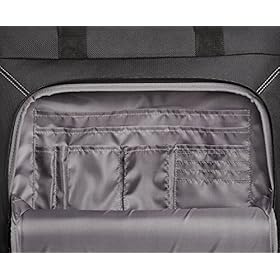 Easy-access front pocket with compartments for smaller items like pens, notepads, and business cards