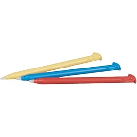 Includes screen protector for lower screen, 3 stylus pens (red, yellow, and blue), and cleaning cloth