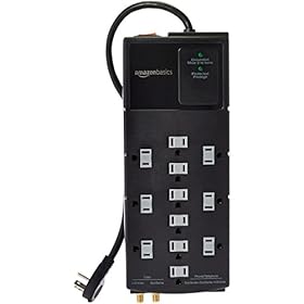 12-outlet surge protector with 8-foot cord; ideal for high-end home and professional workstations