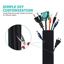 HIGH QUALITY MATERIAL:Â Made from flexible and durable neoprene material. The cord sleeve is expandable and DIY available, you can cut holes at any position to allow cables to be separated.