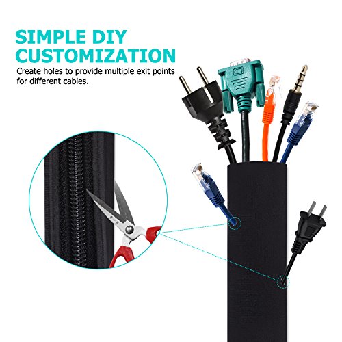 EASY INSTALLATION:Â Just wrap the cord management sleeve around your cables and then zip up, it is the most convenient and simple solution for managing messy cables and tidying up desktop.
