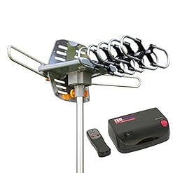 Amplified HD Digital Outdoor HDTV Antenna 150 Miles Long Range with Motorized 360 Degree Rotation, UHF/VHF/FM Radio with Infrared Remote Control
