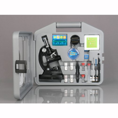 This science microscopy kit includes a perfect beginner level compound microscope equipped with advanced features and the entire must haves of accessories. The microscope features six magnifications of 120X, 240X, 300X, 480X, 600X and 1200X, a single coaxial coarse center of attention knob, a specimen stage with two built-in stage clips, and a nature light and/or LED illumination system. It may be illuminated with either nature light through a mirror or by the built-in LED light that gives direct keep watch over of sunshine. The microscope has a durable metal construction that makes it great value. The kit comes with sample slides, cover slips, tweezers, scalpel, specimen vials, adjustable lenses, collecting lamps plus a sturdy hard case for simple storage and go back and forth. This set is good for beginning scientists.