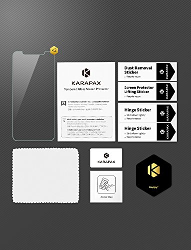 What You Get: 2 KARAPAX GlassGuard Screen Protectors for iPhone X, 2 Microfiber Cloths, 2 Alcohol Wipes, 2 Dust Removal Stickers, Squeeze Card, Alignment Frame, Installation Guide, Happy Card, our worry-free 18 month warranty and friendly customer service.