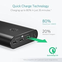 Ultra-High Capacity: PowerCore+ 26800 is among the world’s highest capacity portable charger with Quick Charge 3.0 technology. It charges the iPhone 6s 9 times, the Galaxy S6 over seven times or the 2015 MacBook more than three times.