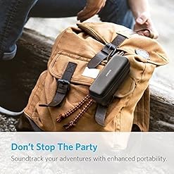 A heavy-duty aluminum carabiner hook is ideal for latching your SoundCore onto a backpack, or resting practically anywhere. Taking your tunes on-the-go just got easier and more protected.