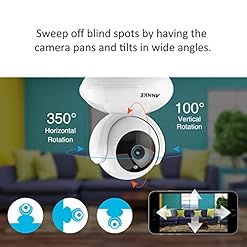 * 1080P HD Video: High definition video lets you discover the main points in pristine colors and smooth on-screen movements. The camera pans 350˚ and tilts 100˚ to give a 360˚ full angle monitor.