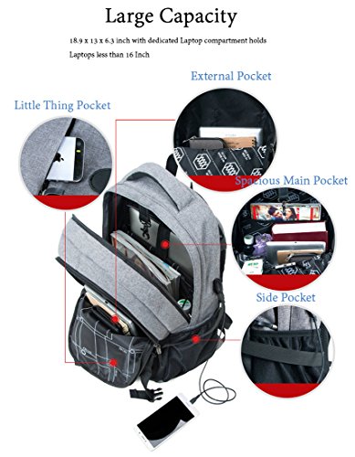 ❤Tons of Space – 18.9x 13 x 6.3 inch with dedicated Laptop compartment holds Laptops less than 16 Inch.This backpack provides you with a number of space to hold items. It easily fits your laptop, pens and notebook, water bottle, shoes and clothes. It offers a lot more space than you would expect from a bag of this size.