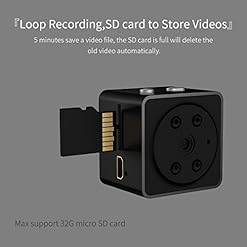 ◆ Micro SD Card Stores with Loop Recording: This mini nanny cam supports microSD cards with 8-32GB capacity(microSD card NOT included) for loop recording.When the card is full,this hidden nanny camera will automatically overwrite the oldest video files. This mini cam also supports recording and charging at the same time, so you do not be disturbed about running out of battery life.